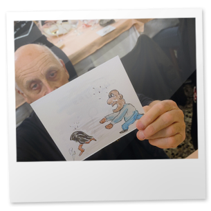 Il comico alla ricezione della tessera con i capelli ha commentato: Mo non ho foto con i capelli !!! ha poi eseguito uno spogliarello per infilarsi la T-shirt del Club mostrando un bel fisico alle donne presenti.