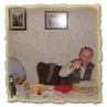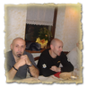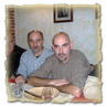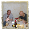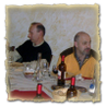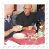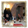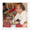 Claudio Bisio con la bottiglia di "Nebbiolo" personalizzata. Mauro Marchisio Presidente del Club Urs di Spinetta.